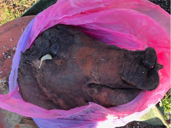 Полицейские располагают видеозаписью с камер наблюдения, в которые попал автомобиль, привёзший сумку с головой свиньи. Им удалось прочитать номерной знак машины.