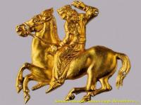 Воинское искусство скифов было высоко развито. Прирожденные конники, скифы создали могучую, многочисленную и обладавшую высокими боевыми качествами конницу. В основной своей массе она была легковооруженной, как и у других кочевников-степняков. Характерный набор вооружения рядового скифского воина включал в себя одно-два копья, пару метательных дротиков и главное его оружие —лук и стрелы с бронзовыми наконечниками. Именно эти предметы вооружения находятся почти в каждой скифской могиле, даже в самой бедной. Интересно, что наконечники стрел, изредка — копий и дротиков, иногда встречаются и в женских захоронениях. Скифянка умела защитить себя и семью в отсутствие мужа...